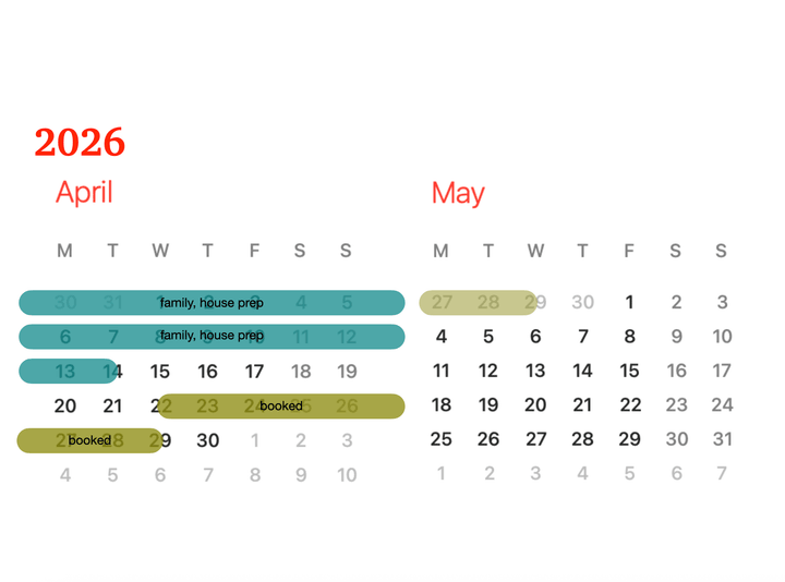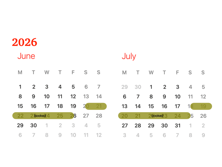 and we can be flexible with arrival and departure days to help with holiday planning...